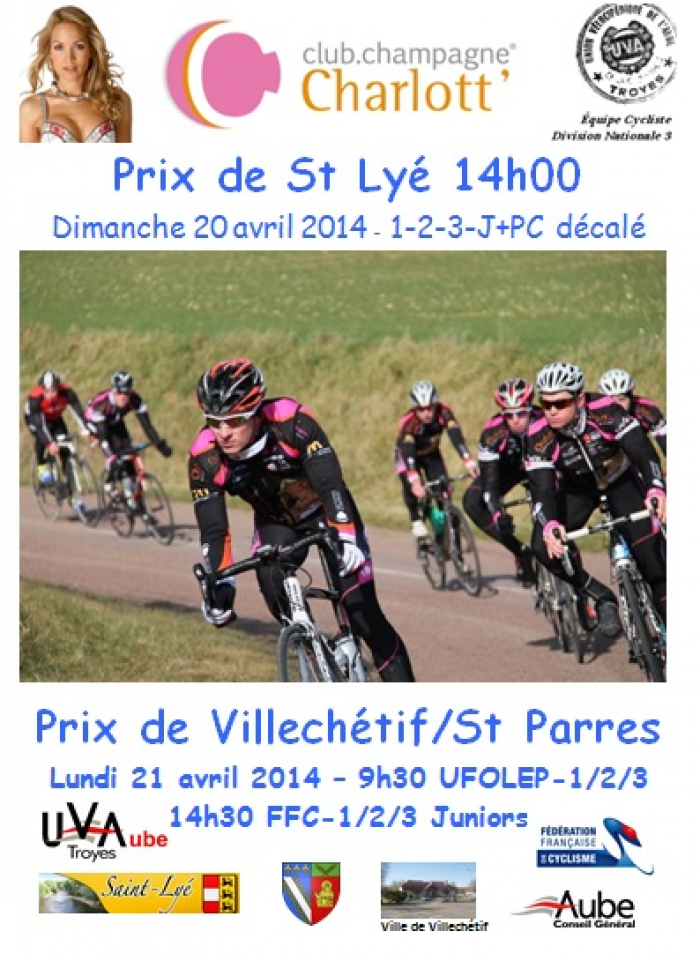 L'UV Aube-Club Champagne Charlott' organise ce lundi le Grand Prix de Saint-Parres-aux-Tertres dans le département de l'Aube. Au programme : un circuit de 4,5 km à parcourir 25 fois pour une distance totale de 112,5 kilomètres. Le départ sera donné à 14h30. Le vainqueur succédera à Romain Barroso, alors au Club Champagne Charlott' et désormais au Guidon Chalettois. Retrouvez ci-dessous la liste des engagés de l'épreuve toutes catégories et plus d'informations sur www.uvaube.com.