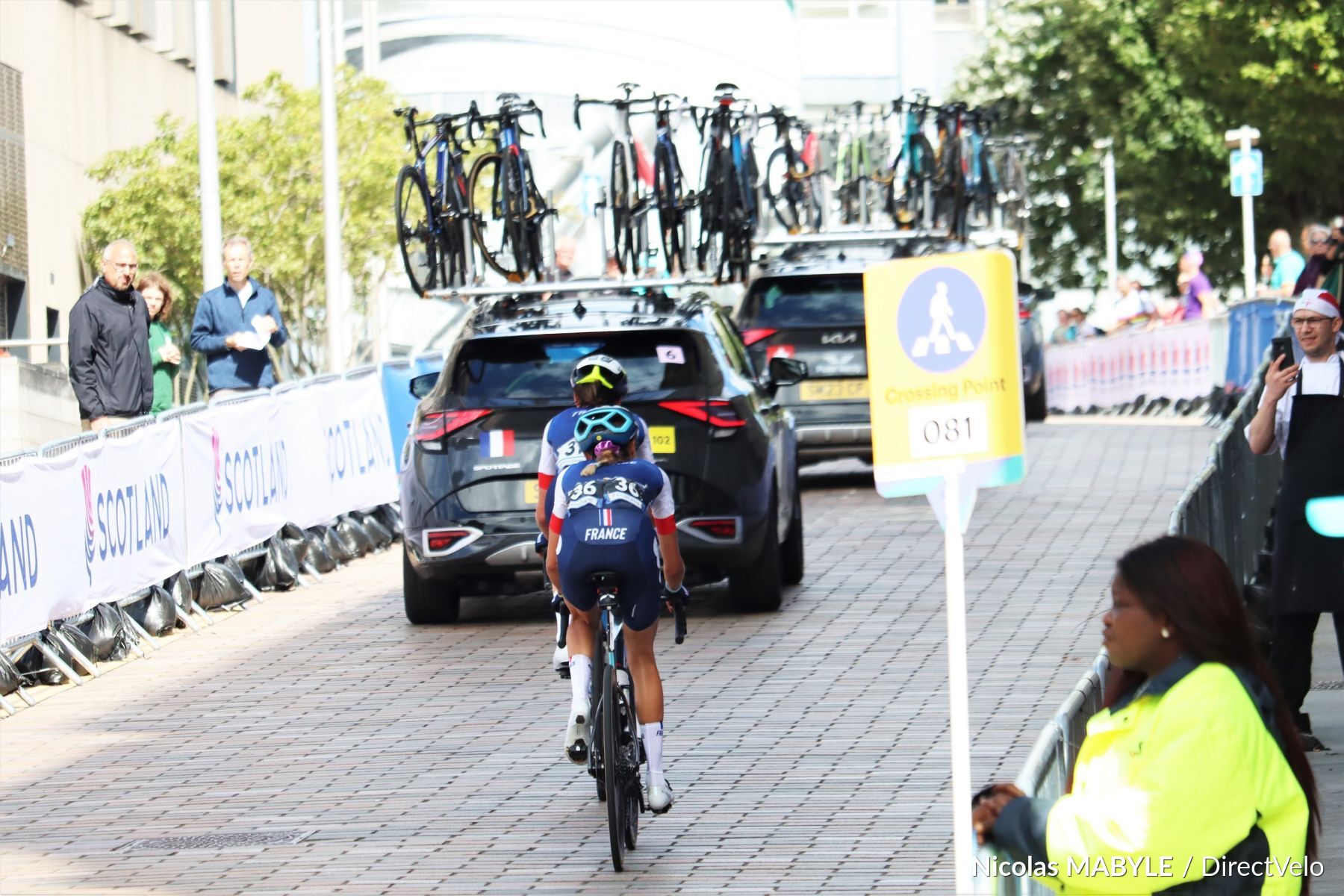 Cette dernière a décidé de faire la course assez tôt, sans véritablement se douter qu’elle était en fait la seule chance de résultat des Bleues sur le circuit urbain de Glasgow. “Je suis sortie loin de l’arrivée. Chez les garçons, ça a marché donc on s’est dit que ça serait vraiment bien d’avoir une bonne carte à l’avant. J’étais avec des filles avec lesquelles j’ai l’habitude de courir : Ashleigh Moolman, Elise Chabbey, Lizzie Degnan… Ce sont des filles qui courent bien. Mais j’en ai peut-être un peu trop fait…”, relate celle qui avait réalisé un chrono très solide (5e) plus tôt dans la semaine. Audrey Cordon-Ragot précise l’aspect stratégique de la course : “il n’y avait pas de leader désignée. On voulait jouer collectif, ne pas louper une échappée. Quand on a eu Juliette devant avec une vraie bonne échappée, c’était parfait pour nous. Derrière, on a encore suivi les échappées en pensant qu’une allait partir. Mais en étant la dernière course du programme, tout le monde s’attendait à ça et c’était beaucoup plus cadenassé”.