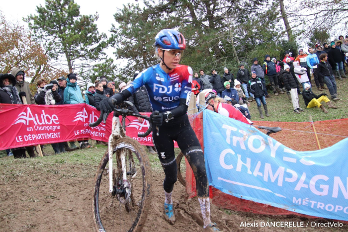 Parenthèse cyclo-cross pour Léa Curinier. L’Ardéchoise, qui a désormais un toit à Reims, profite de la proximité géographique pour disputer la double manche de Coupe de France à Troyes. Très certainement une exception cet hiver. “L’équipe est compréhensive. On nous laisse faire pas mal de choses. Mais je pense quand même que ce sera mon seul week-end de cross, hormis peut-être le Championnat de France. Entre l’école, les stages avec l’équipe, les entraînements… Je n’ai pas 36.000 week-ends de dispo. Là, c’était une occasion pas loin de Reims”, confirme-t-elle auprès de DirectVelo.