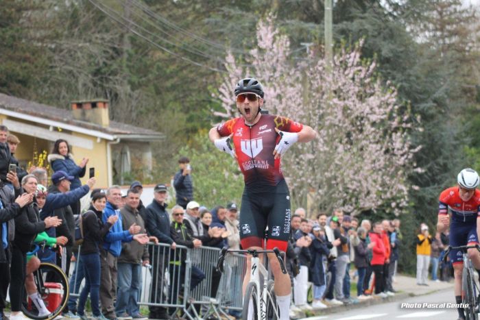 À deux tours de l'arrivée, il est ressorti en compagnie de Jérôme Raus (Béziers Méditerranée Cyclisme) et d’Artus Jaladeau, très actif. “Je savais que j'avais mes chances au sprint”. Mais à cinq kilomètres de l'arrivée, ses deux adversaires tentent de le distancer dans une difficulté du circuit. “Ils m'ont mis une vingtaine de mètres. J'ai préféré lisser l’effort plutôt que de sauter directement dans les roues, ce qui m’a permis, à la bascule, de rentrer sur eux”. Il n’a eu aucun mal à faire parler sa pointe de vitesse. “J'ai lancé le sprint à 150 mètres de la ligne et, comme on était assez arrêtés, j’ai pu sortir directement avec de la giclette, et ça l'a fait”.