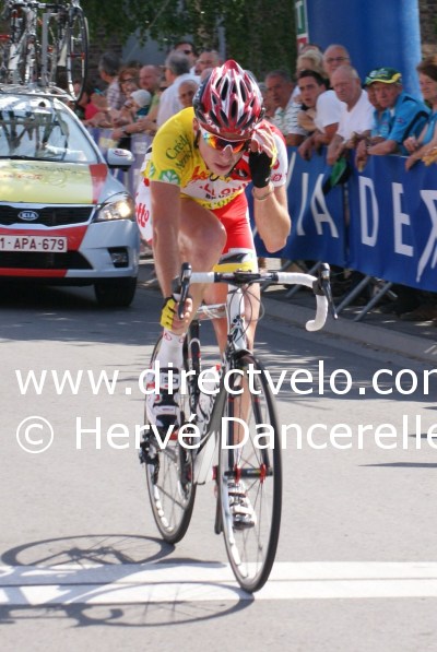 Derrière, on retrouve un contre composé de Thomas Degand (Véranda's Willems - Accent), vainqueur l'an dernier, d'Edwig Cammaerts (Landbouwkrediet) et du Colombien Diego Alejandro Tamayo Martinez (WIT)
