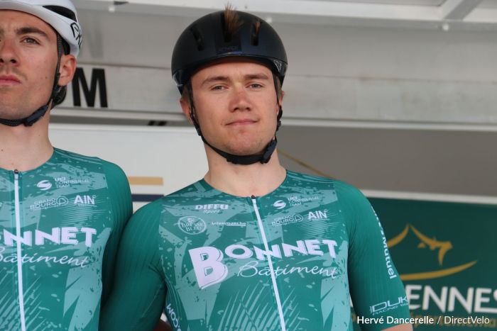 Mais le Breton de Bourg-en-Bresse Ain Cyclisme avait aussi la tête un peu plus à l'ouest, du côté de Beaupréau et de l'arrivée du Pays de la Loire Tour où son "meilleur pote" Victor Guernalec, ancien du club de Bourg, a remporté sa première victoire pro. "C'est assez émouvant. On habite à 10 minutes l'un de l'autre à pied. Donc, on roule ensemble tout le temps. C'est vrai que c'est assez fou. Il était l'année dernière en amateur. Il a réussi à passer pro et là, il gagne une étape chez les pros. Ça remet du baume au cœur et ça montre que tout est possible", savoure-t-il. Le coureur de 24 ans prend Victor Guernalec en exemple. "C'est le gars qui travaille et qui a tout le temps tout fait pour réussir. Il a eu beaucoup de galères. Et puis, celle-là, ça montre que, que ce soit pour lui ou pour les autres, quand on travaille, tout est possible".