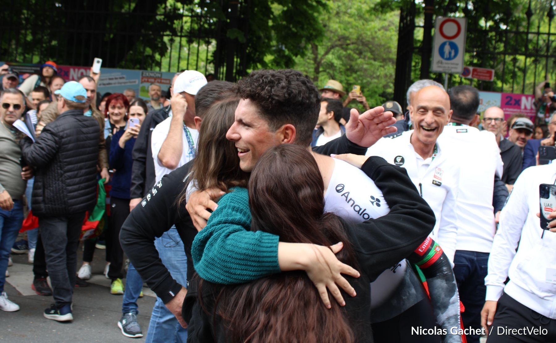 Pour ceux qui n'avaient rien suivi du dénouement du Tour de Romandie, des hurlements du staff de la UAE Team Emirates XRG et du public ont permis de rapidement comprendre qui avait remporté, dans les rues de Genève, l’épreuve WorldTour. Alors que Lenny Martinez n’en avait pas encore terminé, Joao Almeida et ses proches s'enlacent pour fêter le moment. Juste derrière les barrières, de nombreux drapeaux portugais sont de sortie, accompagnés par la voix des « Joao, Joao ».