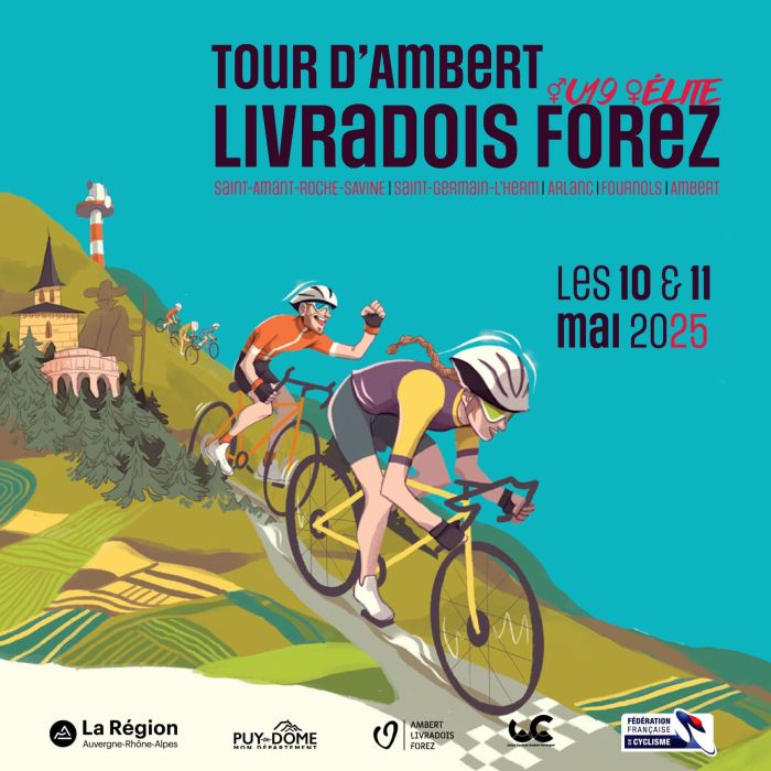 Le Tour d'Ambert Livradois Forez U19 (Fédérale Juniors), succédant au Tour du Pays d'Olliergues, aura lieu les samedi 10 et dimanche 11 mai dans le département du Puy-de-Dôme. Deux étapes en ligne et un contre-la-montre individuel sont au programme de la course organisée par l'Union Cycliste Ambert Auvergne. Retrouvez ci-dessous la liste des étapes et des engagés. Toutes les informations sur tour-alf.fr. Source : altichrono.fr