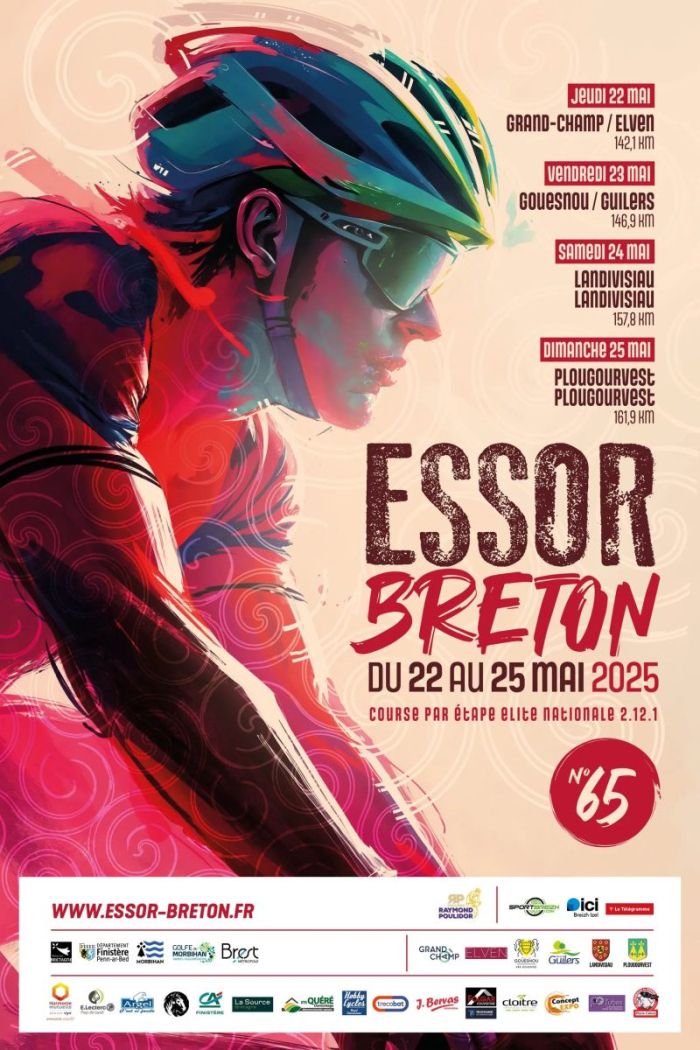 La 65e édition de l'Essor Breton (Élite Nationale) se disputera du jeudi 22 au dimanche 25 mai. Quatre étapes en ligne figurent au programme de l'épreuve bretonne. Le vainqueur succédera au palmarès au Belge Jonas Geens (voir classement). Retrouvez ci-dessous la liste des étapes et des engagés. Toutes les informations sur www.essor-breton.fr.