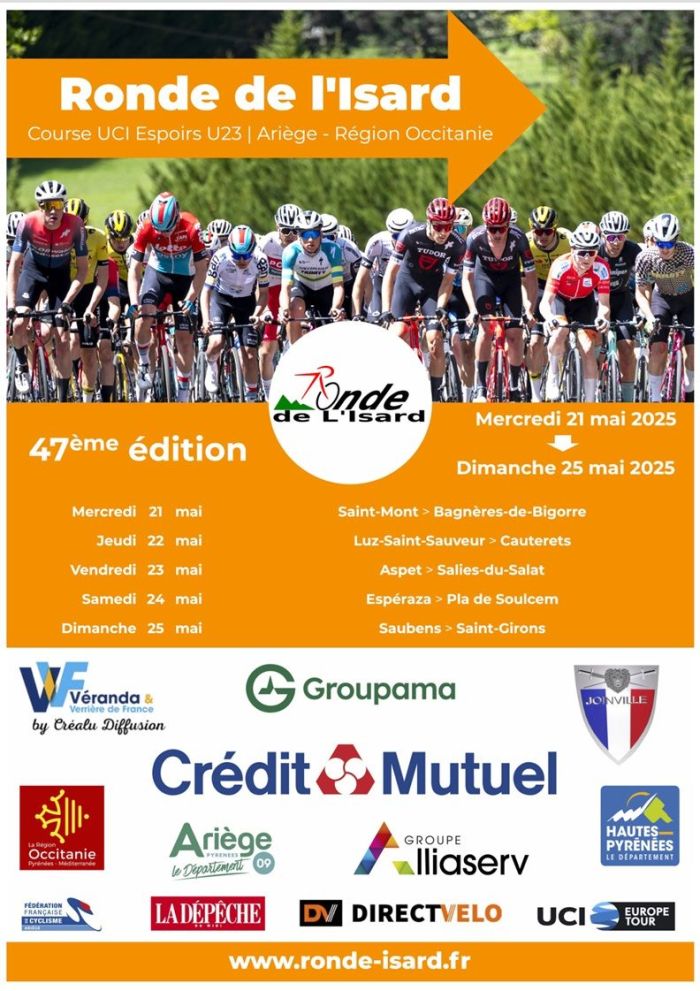 La 47e édition de Ronde de l’Isard (2.2U) a lieu du mercredi 21 au dimanche 25 mai. Cinq étapes figurent au programme de l'épreuve internationale Espoirs (voir ici). Le vainqueur succédera au Néerlandais Darren van Bekkum (voir classements) alors dans la réserve de Visma-Lease a Bike et qui passe pro en 2025 dans la WorldTeam XDS Astana. La course sera à suivre en direct intégral sur DirectVelo. Retrouvez ci-dessous la liste des étapes et des partants. Toutes les informations sur www.ronde-isard.fr. Remerciements à Frédéric Lafargue - www.stsport.fr