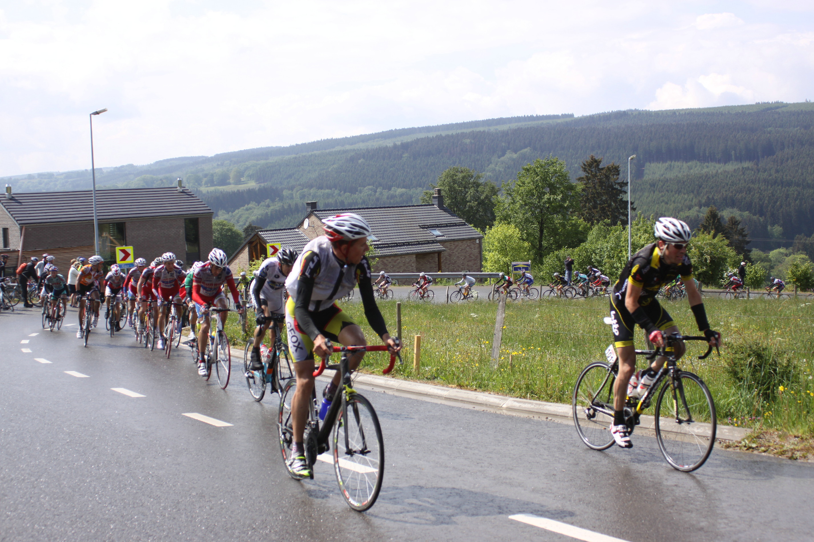 Le peloton, à Polleur-Theux, en chasse derrière les échappés