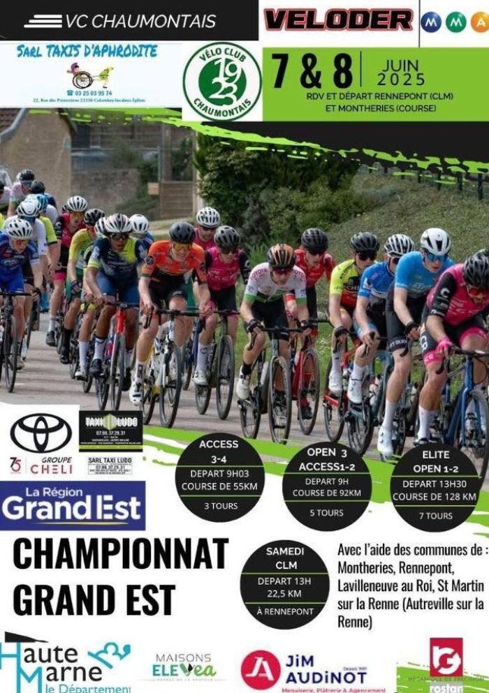 Le Vélo Club Chaumontais organise, ce samedi 7 juin, le Championnat du Grand Est du contre-la-montre, 13e Prix des Vallées Renne-Aujon. 21,5 kilomètres autour de Rennepont (Haute-Marne) sont au programme de l'épreuve chronométrée. Mathis Beurville avait remporté, l'an dernier, le titre de Champion du Grand Est (voir classement). Retrouvez ci-dessous la liste des engagés avec les horaires de départ. Toutes les informations en cliquant ici.