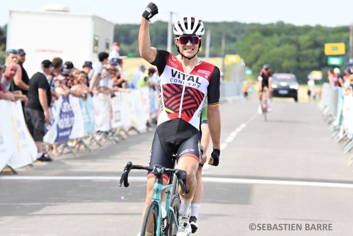Première saison dans les rangs Élites, et déjà une première victoire pour Antoine Basset. Le coureur du VC Pays de Loudéac s’est imposé ce samedi lors de la deuxième étape du Tour d’Eure-et-Loir, au Gault-Saint-Denis. Une consécration attendue, après plusieurs semaines à frôler le succès. “C’est une vraie délivrance. Je tournais autour depuis deux ou trois semaines, concrétiser enfin tout le travail accompli, ça fait du bien”, savoure le Breton de 19 ans auprès de DirectVelo.