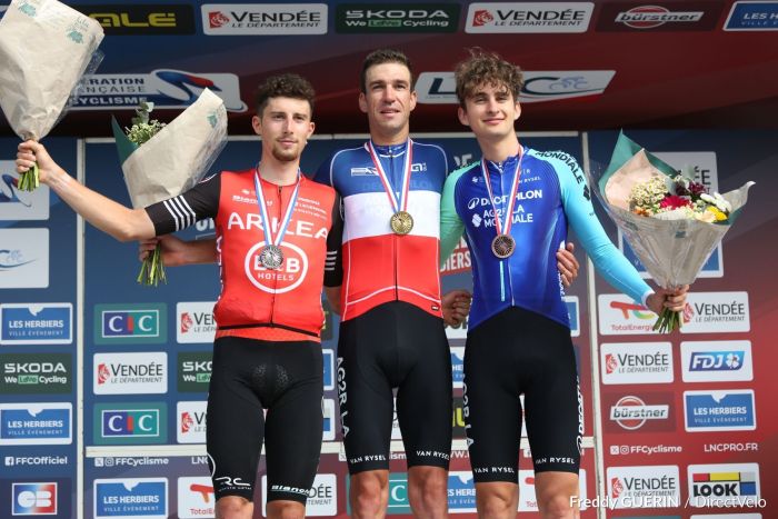 Bruno Armirail (Decathlon AG2R La Mondiale) a remporté, ce jeudi, aux Herbiers (Vendée), le Championnat de France Élite Hommes du contre-la-montre. Le podium est complété par Kévin Vauquelin (Arkéa-B&B Hôtels) et son coéquipier Paul Seixas.