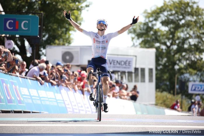 Théo Leveque (Vendée U) a remporté en solitaire, ce vendredi, aux Herbiers (Vendée), le Championnat de France Amateurs Hommes. Après 165 kilomètres de course, il a devancé Léandre Huck (VC Rouen 76) et son coéquipier Mathéo Barusseau.
