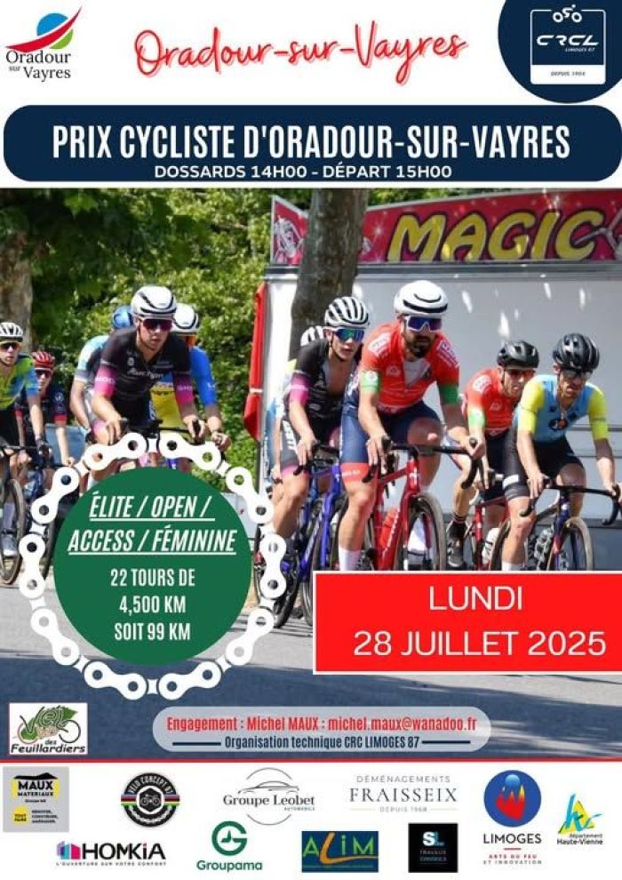 Le Grand Prix d'Oradour-sur-Vayres-Prix Eugène Fourgeaud se dispute ce lundi 28 juillet dans le département de la Haute-Vienne. Au programme de l'épreuve Élite, Open 1-2-3 et Access 1-2-3-4 : un circuit de 4,5 km à parcourir 22 fois soit une distance de 99 kilomètres. Le départ sera donné à 15h. La victoire était revenue l'an dernier à Yoann Paillot. Retrouvez ci-dessous la liste des engagés de la course organisée par le Cyclo Racing Club Limoges 87. Toutes les informations en cliquant ici. Remerciements à Michel Maux, CRC Limoges 87.