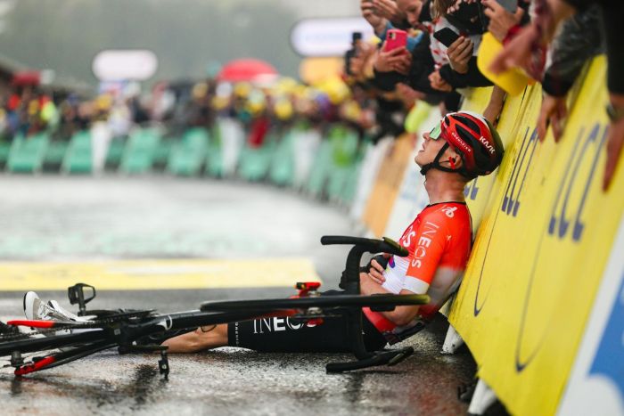 Pourtant, son coéquipier Axel Laurance a indiqué au micro d’Eurosport qu’il n’était pas au mieux ces derniers jours. “Il était un peu malade, il a le nez pris“. La veille, il n’avait terminé que 19e, après avoir intégré une échappée dans la première ascension de la journée, le col du Glandon, qui a été reprise dans la montée suivante, le col de la Madeleine. “Hier, il était assez déçu. Il était assez stressé, il avait encore envie de gagner. On lui a dit de prendre ça comme un jeu, qu’il n’avait rien à perdre car il avait déjà une victoire d’étape dans la poche. On a essayé de le rassurer au maximum. On était avec lui dans la première bosse (le col des Prés), on a essayé de le garder calme. On a vu que ça ne servait à rien d’essayer de faire le jump sur les échappés car ça allait trop vite. Après, il a été impressionnant“.