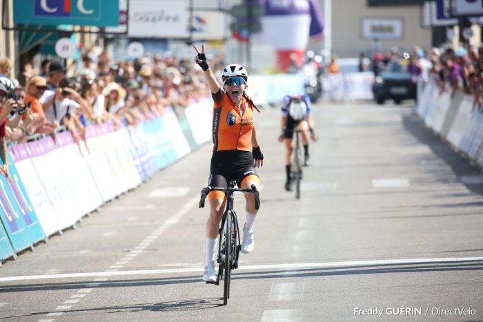 Thaïs Poirier (Nouvelle Aquitaine) a remporté, ce dimanche, à la Tour-du-Pin (Isère), le Championnat de France U19 Femmes. Elle a devancé Lise Revol (Grand Est) et sa coéquipière Lilou Jauvin.
