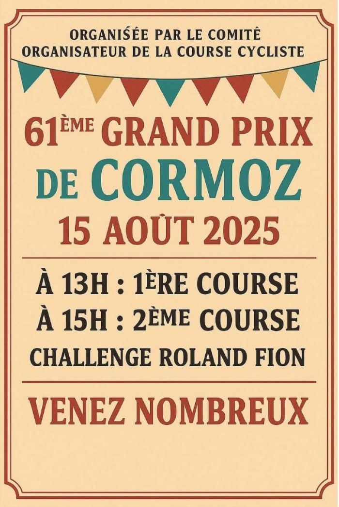 Le Prix de Cormoz se dispute ce vendredi 15 août dans le département de l'Ain. Au programme de la course organisée par Bourg-en-Bresse Ain Cyclisme : un circuit de 9,3 km à parcourir 14 fois soit 130,2 kilomètres. Le départ sera donné à 15h. La victoire était revenue l'an dernier à Damien Beton. Retrouvez ci-dessous la liste des engagés de l'épreuve Élite et Open 1-2-3. Remerciements à Jean-Pierre Poncin.