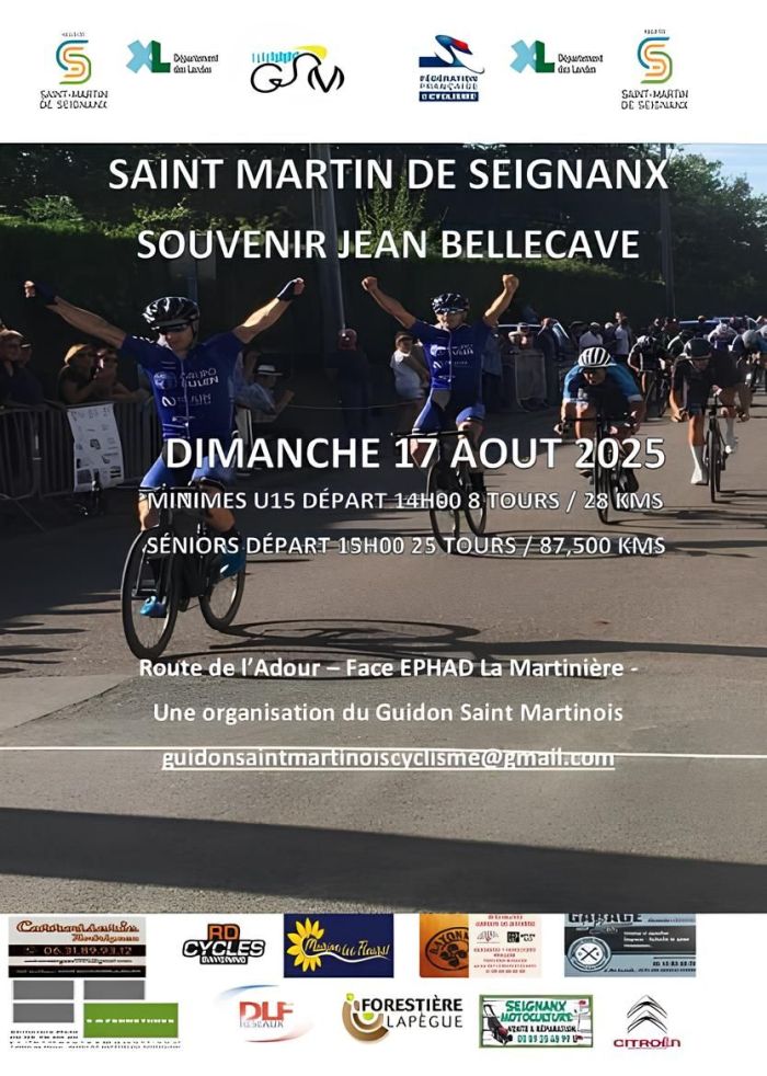 Le Souvenir Jean Bellecave se dispute ce dimanche 17 août à Saint-Martin-de-Seignanx dans le département des Landes. Au programme de l'épreuve Élite, Open et Access : un circuit de 3,5 km à parcourir 25 fois pour une distance totale de 87,5 kilomètres. Le départ sera donné à 15h. La victoire était revenue l'an dernier à Luca De Vincenzi. Retrouvez ci-dessous la liste des engagés de la course organisée par le Guidon Saint-Martinois.