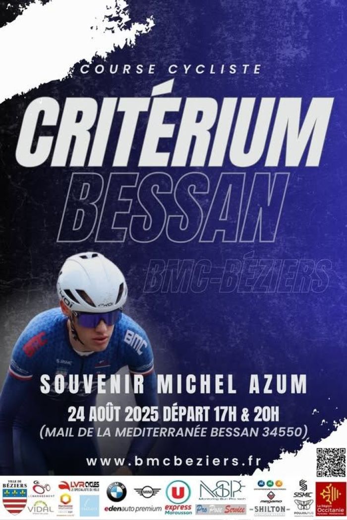 Le Critérium de Bessan-Souvenir Michel Azum se dispute ce dimanche 24 août dans le département de l'Hérault. Au programme de la course organisée par le Beziers Méditerranée Cyclisme : un circuit de 980m à parcourir 80 fois soit 78,4 kilomètres. Le départ sera donné à 20h. La victoire était revenue l'an dernier à Gauthier Navarro. Retrouvez ci-dessous la liste des engagés de l'épreuve Élite, Open et Access.