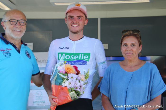 Victor Jean (CC Étupes) a remporté, ce vendredi, la première étape du Tour de Moselle (Élite Nationale), disputée entre Hagen et Contz-les-Bains/Stromberg sur une distance de 144,1 kilomètres. Il a devancé son coéquipier Gaspard André et Louis Ferreira (Bourg-en-Bresse Ain Cyclisme).