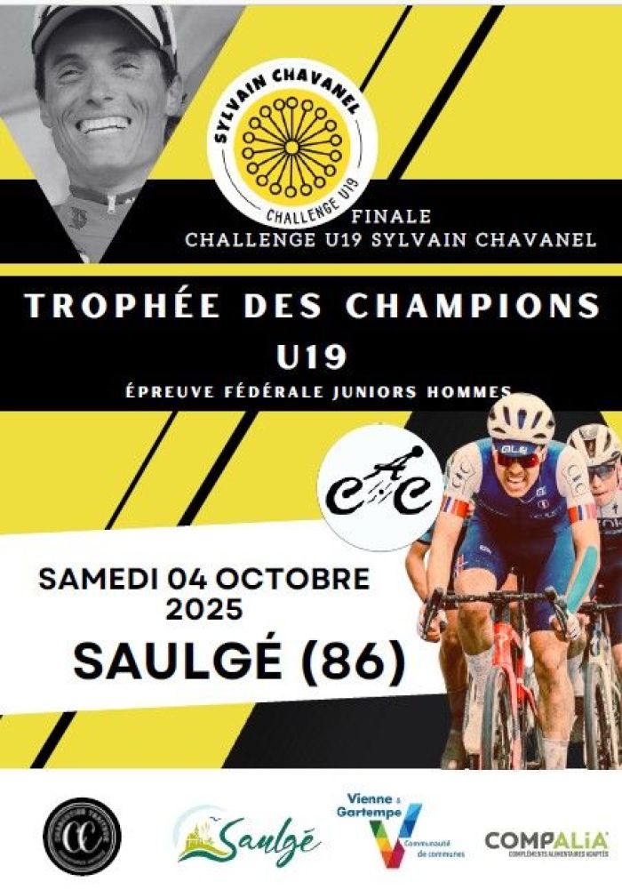 La première édition du Trophée des Champions U19 (Fédérale Juniors), finale du Challenge U19 Sylvain Chavanel, se dispute ce samedi 4 octobre à Saulgé (Vienne). Au programme : un circuit de 12,8 km à effectuer 8 fois, soit 102,4 kilomètres. Le départ sera donné à 15h. Retrouvez ci-dessous la liste des engagés et toutes les informations sur acchatellerault.free.fr.