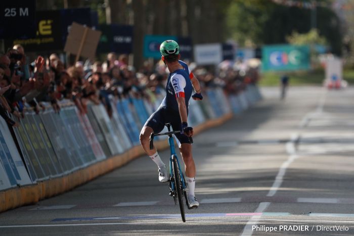 Tadej Pogacar (Slovénie) a remporté en solitaire, ce dimanche, le Championnat d'Europe Élite Hommes. Après 202,5 kilomètres de course entre Privas et Guilherand-Granges (Ardèche), il a devancé Remco Evenepoel (Belgique). Paul Seixas (France) complète le podium.