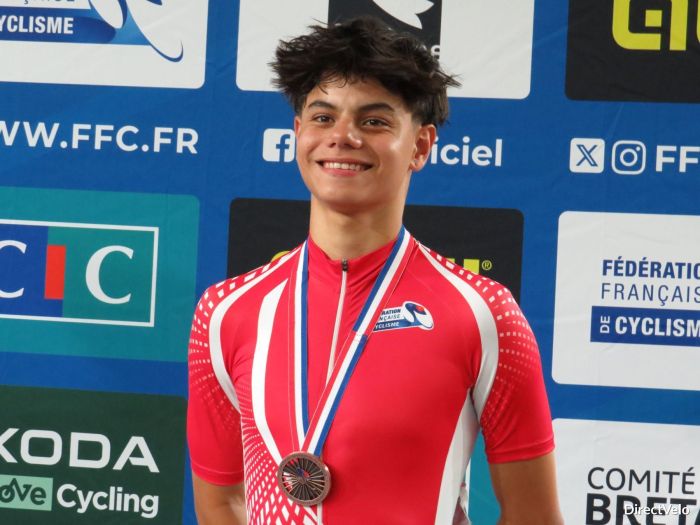 ll y a un an, Toanui Tanetoa découvrait le Championnat de France sur piste. Un an plus tard, le Tahitien de 16 ans compte déjà deux médailles de bronze dans le Championnat de France 2025 qui se dispute à Loudéac. Après l'Omnium de jeudi, il a pris la 3e place du scratch Cadets ce vendredi soir. Dans les deux derniers tours, le sociétaire du GSC Blagnac en métropole a fait montre d'une giclette remarquable. Il est sorti comme une balle du peloton mais, déjà, Layann Clovis, impressionnant lui aussi et Maxime Cazaillon l'avaient devancé. De quoi nourrir quelques regrets. "Je pense que comme tout coureur qui vient sur la piste en finale, on est là pour chercher le titre, reconnaît-il auprès de DirectVelo. Malheureusement, Layann est sorti tôt, très fort, et un coureur de la Nouvelle-Aquitaine aussi est sorti devant. Ils ont bien joué. Malheureusement, en sortant trop tard, je n'ai pas pu faire une meilleure place que celle de 3e".