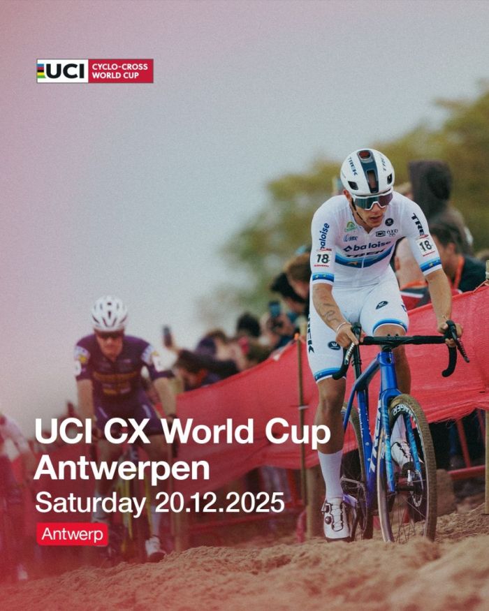 La cinquième manche de la Coupe du Monde de cyclo-cross 2025-2026 se disputera ce samedi 20 décembre à Anvers dans la province d'Anvers. L'épreuve Élite Hommes débutera à 15h10, pour une durée d'environ 60'. Retrouvez ci-dessous la liste des engagés et toutes les informations sur www.ucicyclocrossworldcup.com.