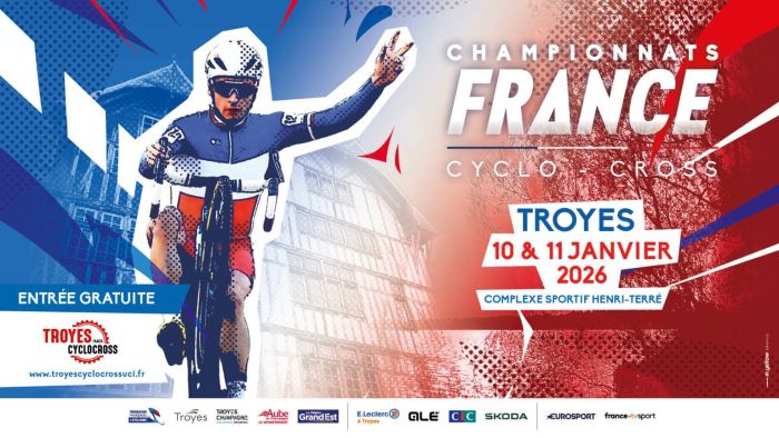 Le Championnat de France de cyclo-cross se dispute les 10 et 11 janvier à Troyes (Aube). Neuf titres seront décernés dont le relais des comités régionaux. Cette épreuve ouvrira le bal samedi matin. L'appel débutera à 10h. Le départ sera donné à 10h15 pour environ 30' de course. Toutes les épreuves seront à suivre en direct sur DirectVelo. Le Comité Bourgogne-Franche-Comté s'était imposé l'an dernier. Retrouvez ci-dessous la liste des partant(e)s et toutes les informations en cliquant ici. Remerciements à Frédéric Lafargue - www.stsport.fr