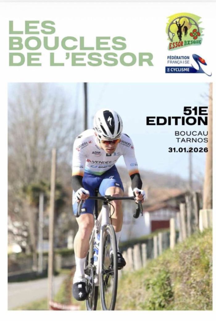 Cinq manches, deux le premier week-end et trois le second, figurent au programme de la 51e édition de l'Essor Basque. Les Boucles de l'Essor (Élite Nationale) lancent la saison amateur en métropole ce samedi 31 janvier, sur une distance de 106 kilomètres entre Boucau (Pyrénées-Atlantiques) et Tarnos (Landes). Le départ fictif sera donné à 13h45 et le réel à 14h. Le vainqueur succédera à Gari Lagnet. La course sera à suivre en direct sur DirectVelo. Retrouvez ci-dessous la liste des épreuves et les partants des Boucles de l'Essor. Toutes les informations sur www.essorbasque.fr. Remerciements à Stéphane Lipinski.