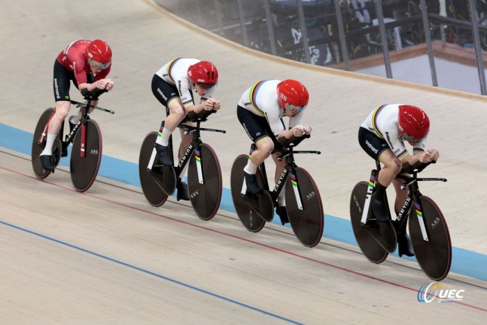 Chez les Femmes, l'équipe de Grande-Bretagne composée de Katie Archibald, Josie Knight, Anna Morris et Millie Couzens, établit le nouveau record du monde avec un temps de 4'03"634. L'ancien record datait des Jeux de Tokyo en 2021 et appartenait à l'Allemagne avec une marque de 4'04"242.