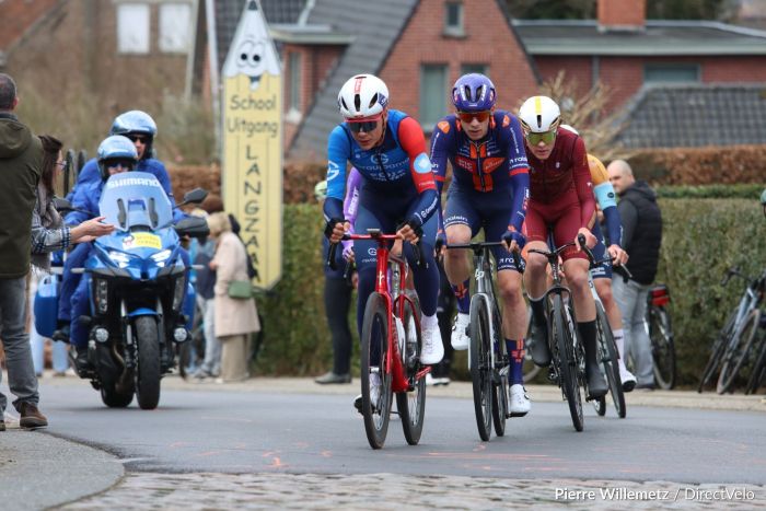Johan Jacobs a passé la journée à l’avant sur Kuurne-Bruxelles-Kuurne. Malheureusement pour le Suisse de Groupama FDJ United, le peloton n’a laissé aucune chance à l’échappée. "C’était la stratégie d’avoir quelqu’un dans le groupe de devant, ça nous permettait d’anticiper voire même de jouer la gagne. Si je me souviens bien, Taco van der Hoorn et Dries de Bondt ont fait podium ici en partant dans l’échappé matinale, malheureusement ça n’a pas marché aujourd’hui".