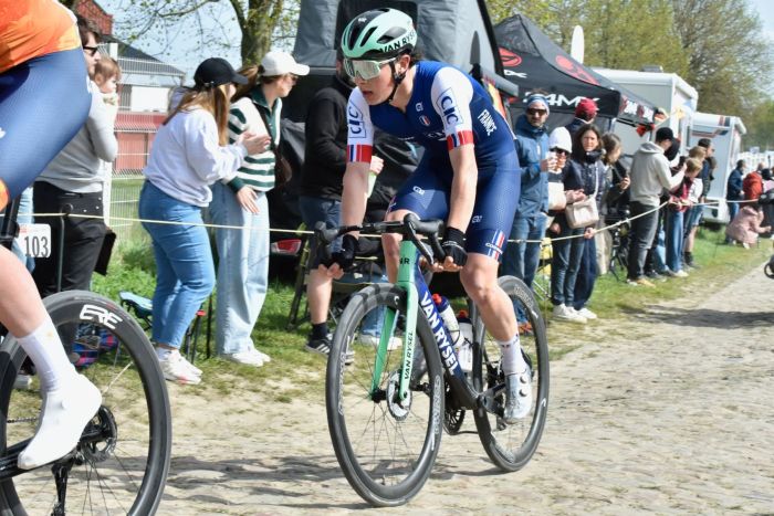 À l’aise techniquement sur les pavés, le Champion de France de cyclo-cross U19 semble en contrôle et se permet même de choisir ses trajectoires. “Dans les virages avec les graviers comme sur les pavés, on se faufile mieux. On est plus détendu sur le guidon, plus relâché dans les mains, et on perd beaucoup moins d'énergie que les autres”.