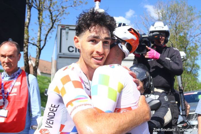 Blessé au genou, Jordan Jegat était contraint à une reprise différée, ce vendredi, lors de la Classic Grand Besançon Doubs. Dans un week-end qui lui a souvent réussi par le passé, le coureur de TotalEnergies n'a pas mis longtemps à se remettre dans le bain, puisqu'il s'est imposé au Belvédère de Montfaucon, en dominant le duo de Decathlon CMA CGM : Matthew Riccitello et Léo Bisiaux. Du même coup, le coureur de 26 ans décroche son premier succès chez les pros. Jordan Jegat pouvait ainsi pousser un ouf de soulagement au micro de DirectVelo, et mettre définitivement cette période délicate derrière lui.