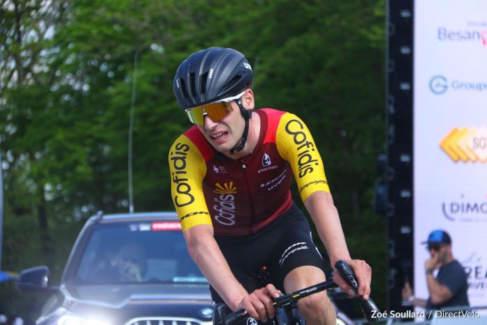 Jamie Meehan s'est bien battu ce vendredi, à la Classic Grand Besançon Doubs. Un temps dans le sillage de Jordan Jegat, Léo Bisiaux, et Matthew Riccitello, le coureur de Cofidis a finalement lâché un peu de temps, mais sans pour autant perdre le Top 5. "Il me faudra quelques heures pour réaliser. Car à chaud, je ne sais pas vraiment ce que j’ai fait aujourd’hui, sourit-il à l'arrivée, encore essoufflé par l'effort violent. J’espérais être autour du niveau du Top 10, mais après avoir fait le Pays basque la semaine dernière, je ne savais pas comment seraient les jambes. Et heureusement, elles étaient bonnes".