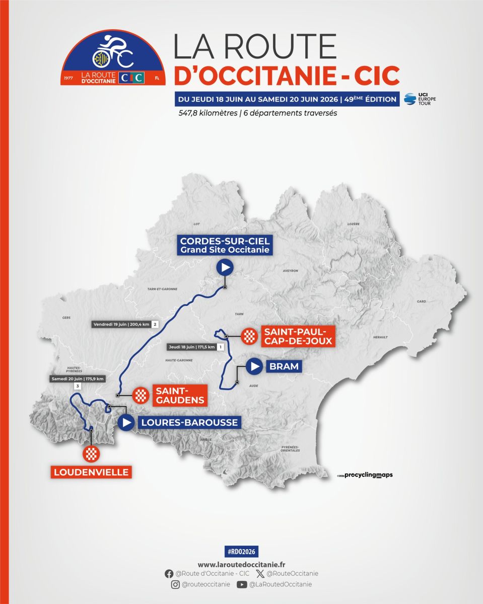 La 49e édition de la Route d'Occitanie-CIC (2.1) aura lieu du 18 au 20 juin prochains. Trois étapes et 547,8 kilomètres figurent au programme. Six départements de la région Occitanie seront traversés par les coureurs. Bram (Aude) accueillera le grand départ, Loudenvielle (Hautes-Pyrénées) l'arrivée finale. La Hourquette d’Ancizan et le col de Val-Louron-Azet seront au programme le dernier jour. Le vainqueur succèdera à Nicolas Prodhomme.