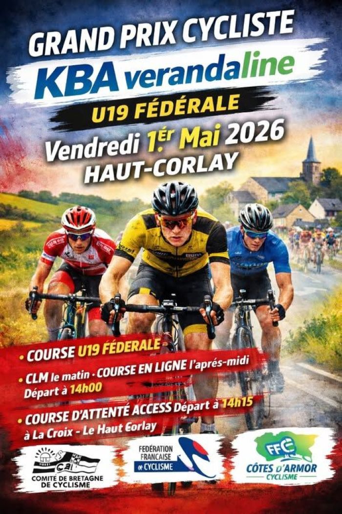 La 9e édition du Grand Prix KBA Vérandaline (Fédérale Juniors) se dispute ce vendredi 1er mai au Haut-Corlay dans le département des Côtes-d'Armor. Un contre-la-montre le matin de 9,5 kilomètres et une étape en ligne l'après-midi (88,4 km en ligne et 6 tours de circuit de 4,2 km soit 113,6 km) sont au programme de l'épreuve organisée par l'Association Sports et Loisirs du pays de Corlay. Le vainqueur succédera à Rafe Cushway (Véloce Vannetais). Retrouvez ci-dessous les horaires de départ et la liste des engagés. Toutes les informations en cliquant ici.