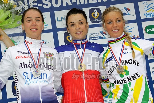 Podium espoirs : Amélie Rivat (2e), Audrey Cordon (1ère), Pauline Ferrand-Prévot (3e)