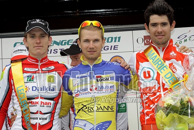Le podium 2011 : Arnaud Démare (2e), Renaud Pioline (1er), Bryan Nauleau (3e)