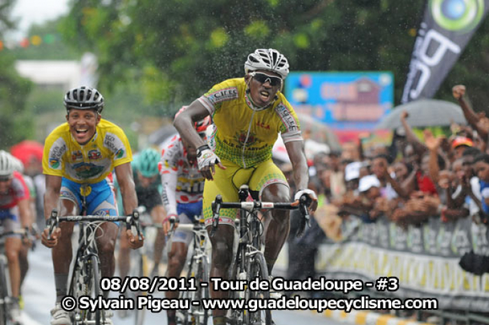 Lionel Miny à remporté lundi la troisième étape du 61ème Tour de Guadeloupe à Petit Bourg. Le sociétaire de la JCA s’est imposé au terme d’un sprint massif du peloton devant le leader de la course Boris Carène et Miguel Ubeto (Gwada Bikers 118).