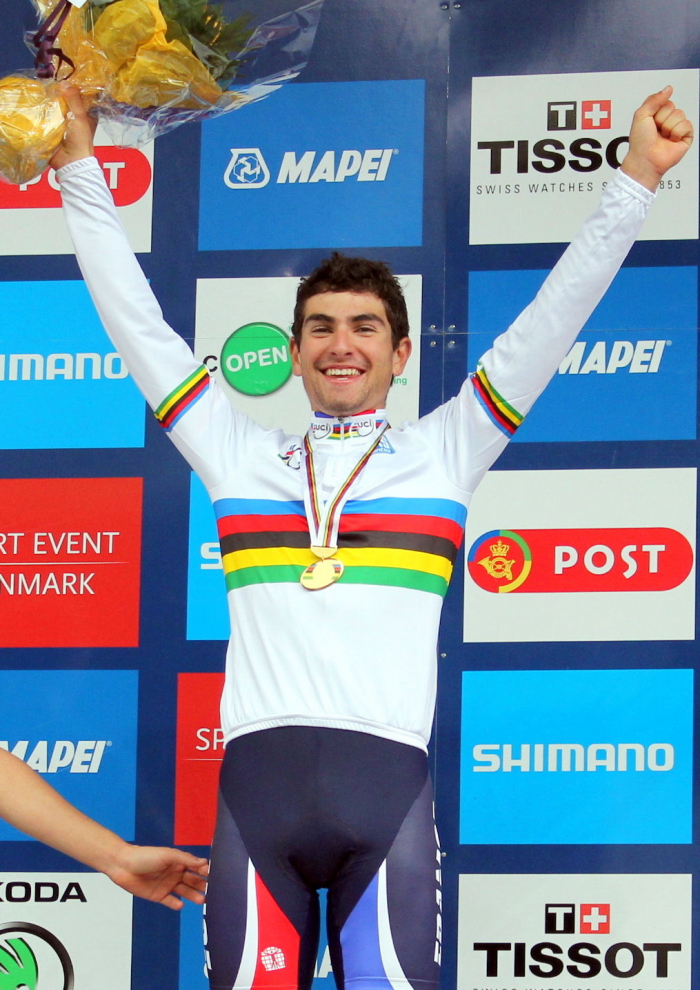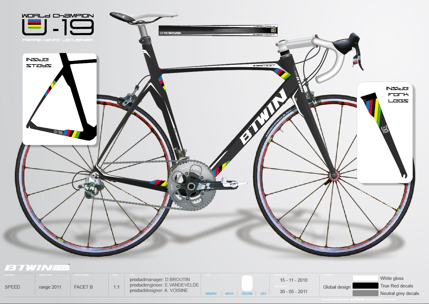Pierre-Henri Lecuisinier (VS Gerzat) va recevoir la semaine prochaine sa tenue complète de champion du Monde. L'équipement a été fait par la société BTWIN. A travers l'U19 Racing Team, l'entreprise basée à Lille (Nord) accompagne depuis trois saisons le futur coureur du Vendée U. Outre la tenue et les accessoires, le coureur installé à Laval (Mayenne) va recevoir un vélo rappelant sa victoire au Danemark, un exemplaire unique. (Voir ci-dessous les visuels)
