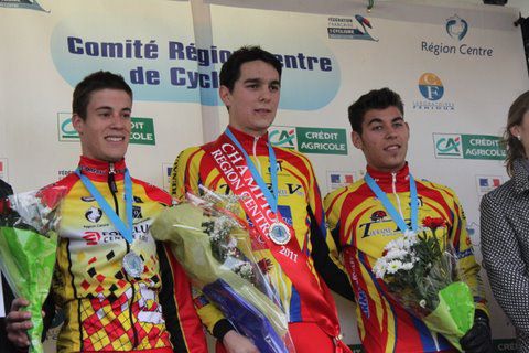 Le podium Espoirs : Maxime Girardin (UC Orléans, 2e), Rémi Brière (US Saint-Pierre-des-Corps, 1er), et Nicolas Coste (US Saint-Pierre-des-Corps, 3e)