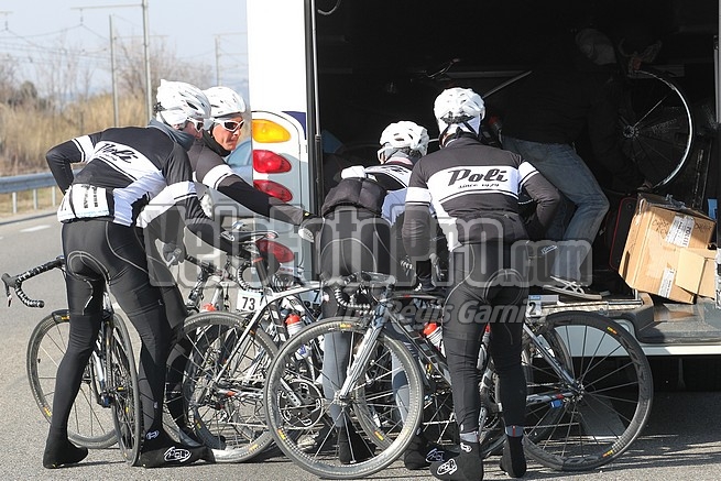 Les coureurs, dont ceux de BigMat-Auber 93, montent dans les véhicules pour rejoindre l'arrivée