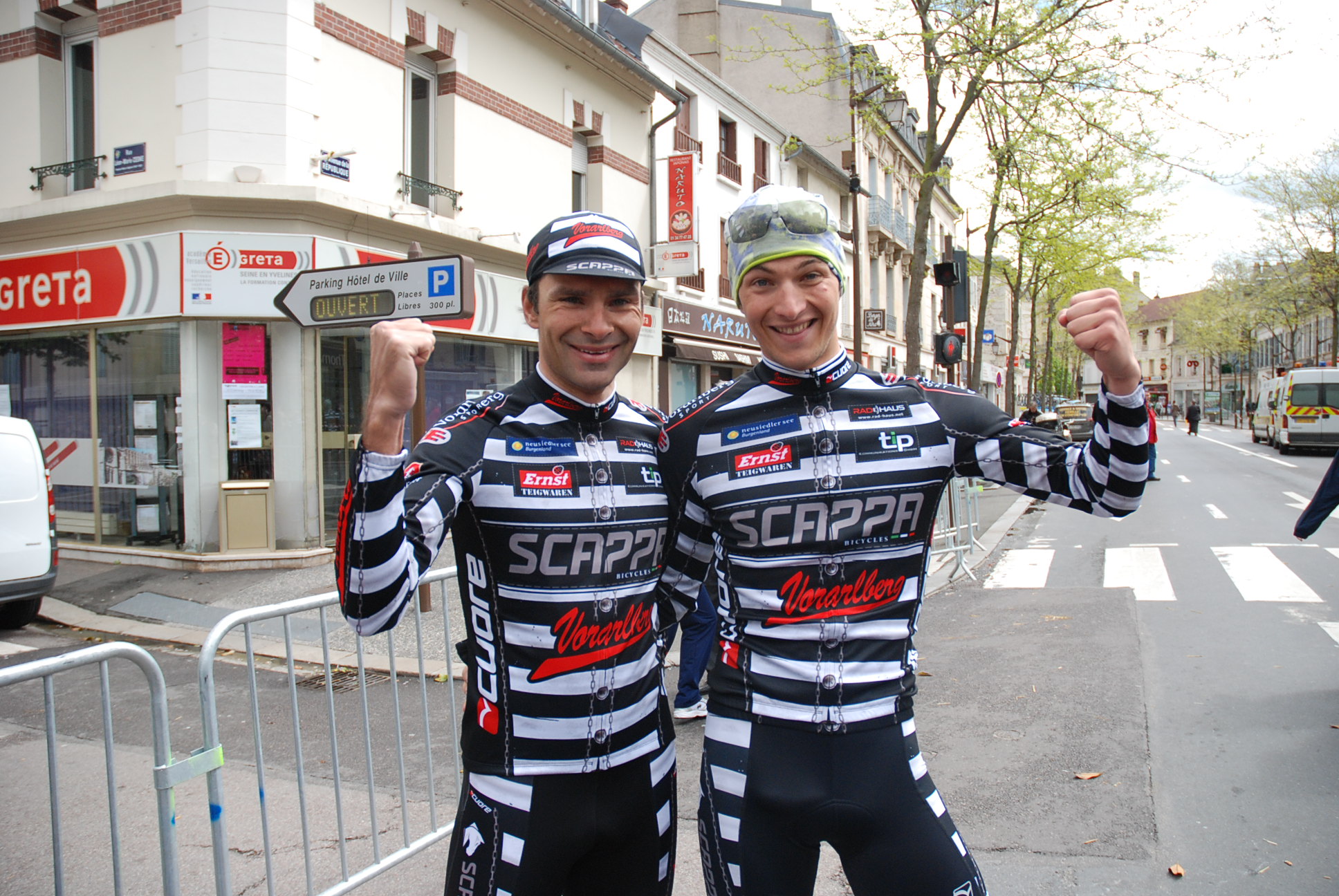 Le Team Vorarlberg, content de leur performance, avec le meilleur grimpeur de Paris-Mantes-en-Yvelines Robert Vrecer et le 3e Florian Bissinger