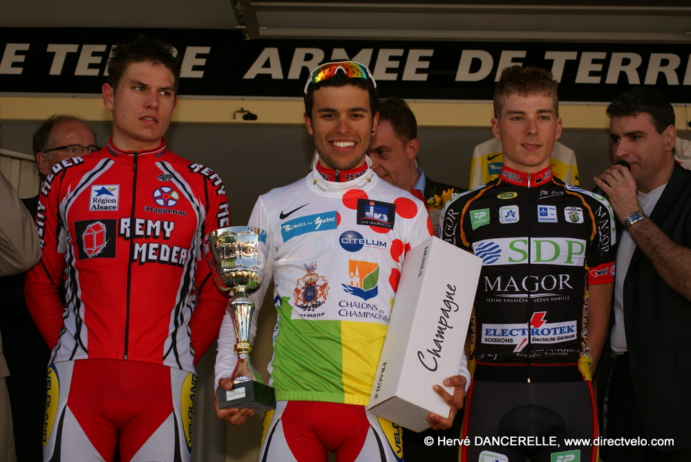 Podium du meilleur sprinteur : Camille Thominet (3e), Cédric Gaoua (1er) et Maxime Robert (2e)
