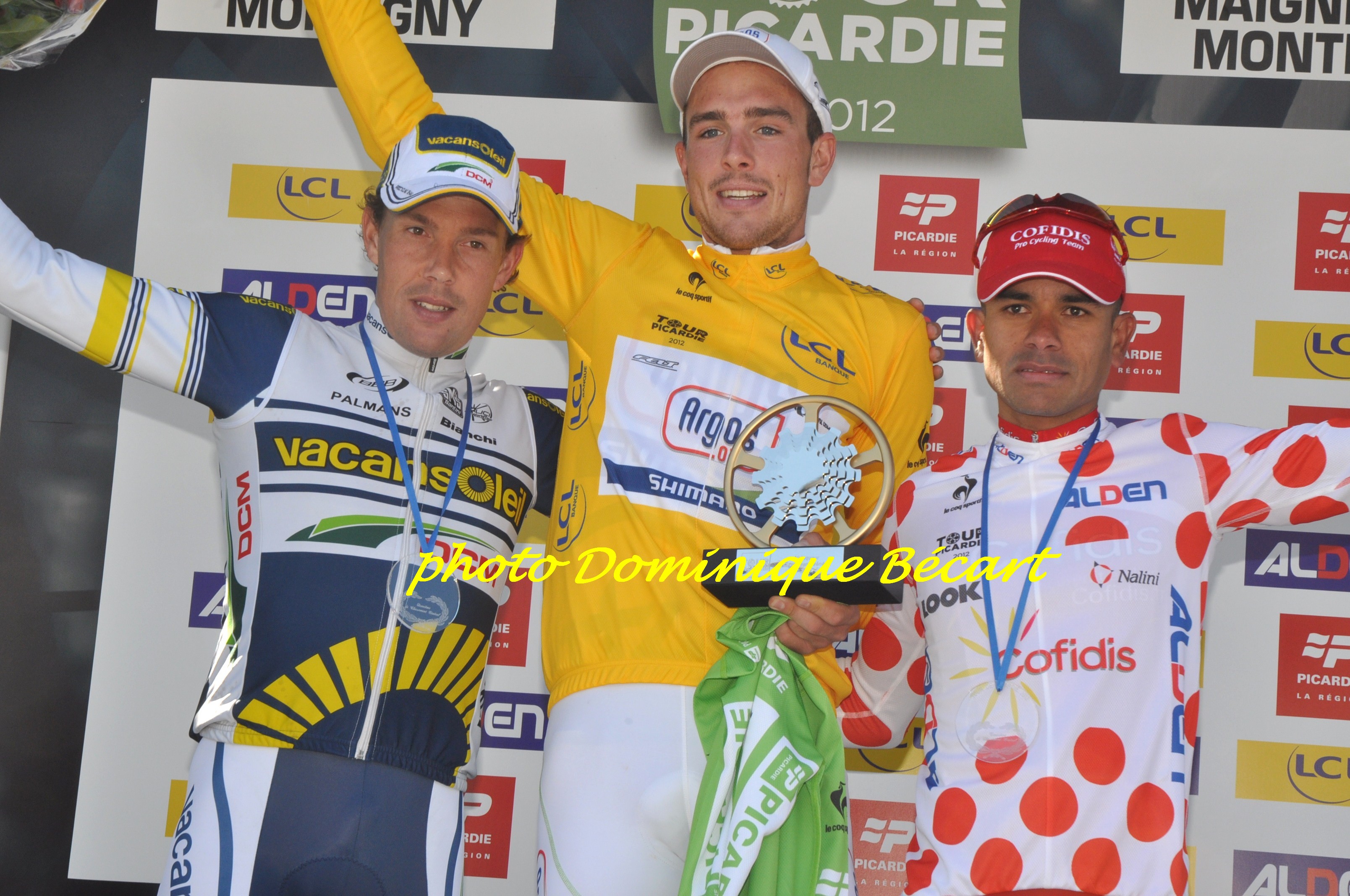 Le podium du Tour de Picardie 2012 : Kenny Van Hummel (2e), John Degenkolb (1er) et Leonardo Duque (3e)