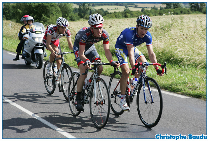 Chaque saison, Alexandre Guay est "super motivé" pour les 2 jours cyclistes du Perche. "La course se déroule à une heure de chez moi environ" déclare le Sarthois. Sur la première étape, samedi dernier, il a pris la troisième place derrière Samuel Plouhinec (Team Peltrax-CS Dammarie-lès-Lys) et Théo Vimpère (CM Aubervilliers 93-BigMat). Il raconte : "La première étape s'est plutôt bien passée pour moi. Quand j'ai vu tous les favoris sortir, à savoir les frères Lebreton, Vimpère, Thominet et surtout Plouhinec, je me suis dit qu'il fallait y aller. Comme mon équipe travaillait derrière pour Antony (Tevenot) je n'ai pas roulé entre le km 35, soit le 1er GPM et le km 83, là où Samuel a décidé d'attaquer, Théo est rentré puis ensuite moi. Dans le final, ils étaient au-dessus de moi. Je n'ai pas pu suivre après plusieurs accélérations successives dans l'avant dernier GPM."