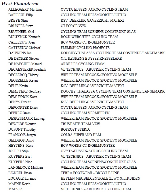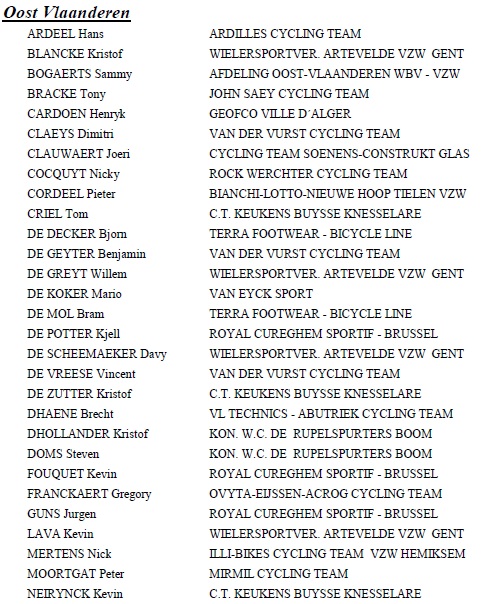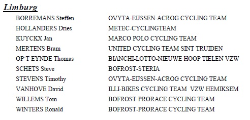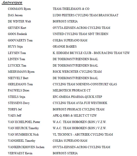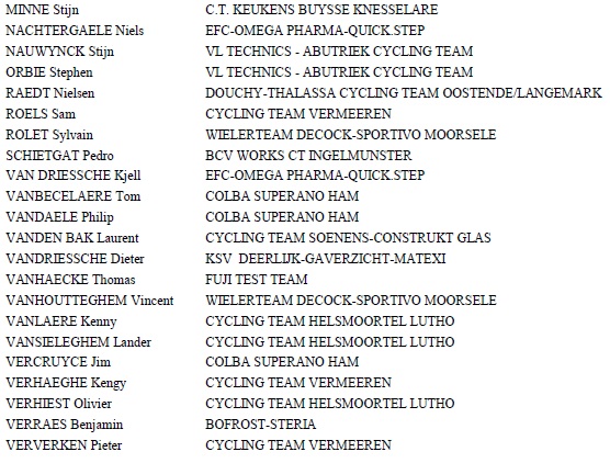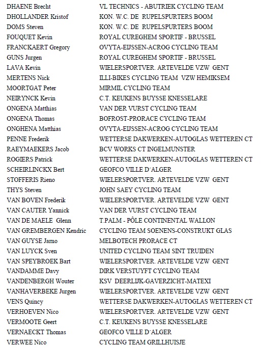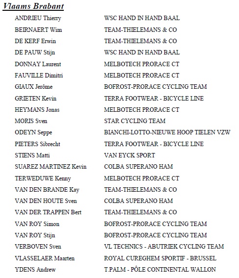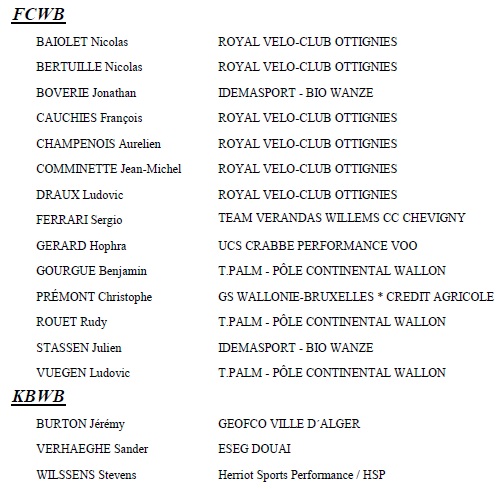 Championnat de Belgique - Elites-sans-contrat : Les engagés