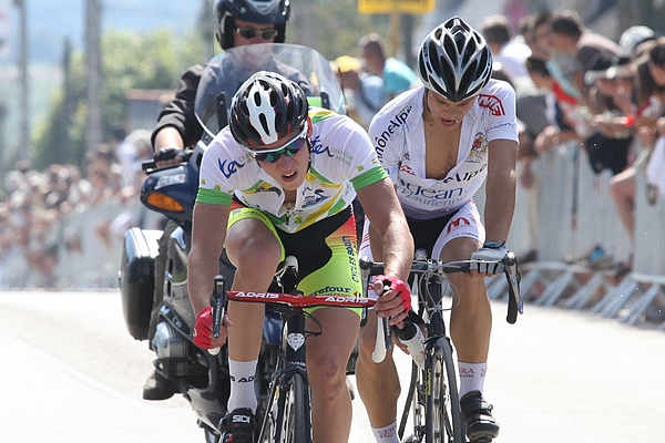 Thomas Waree (Picardie) mène l'échappée devant Gabriel Thoulouse (Rhône-Alpes)