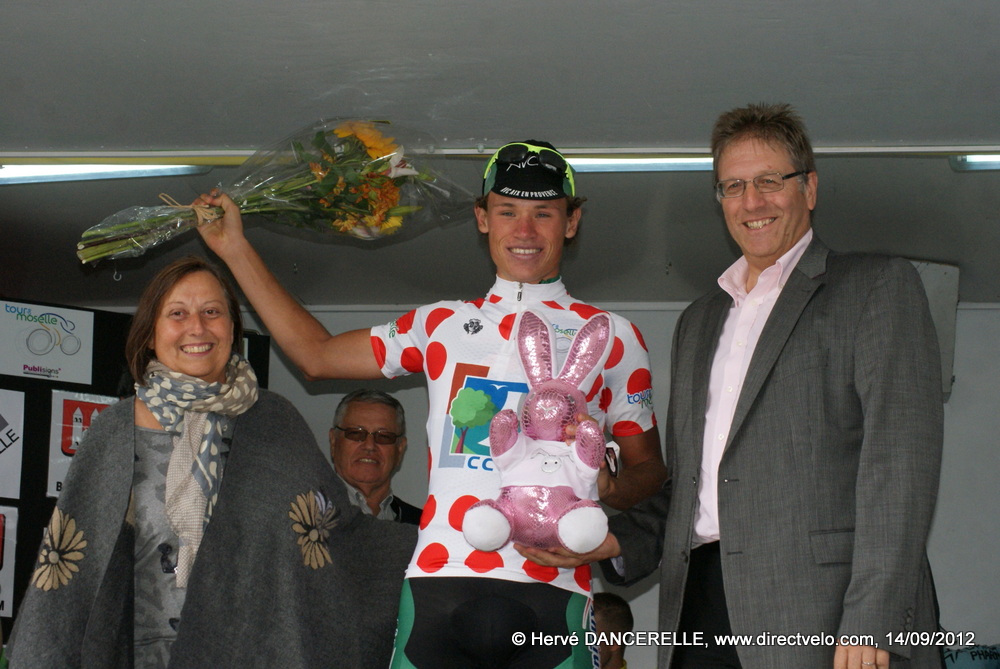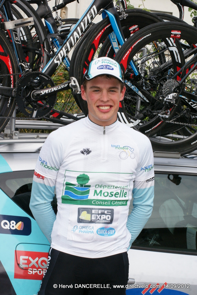Stijn Steels (EFC-Omega Pharma-Quick Step) s'est imposé ce vendredi sur la 1ère étape du Tour de Moselle (Elite Nationale), disputée entre Escherange et Roussy-le-Village sur 157,3 km. Le Belge devance son dernier compagnon d'échappée Thomas Rostollan (AVC Aix-en-Provence). Son compatriote Frederik Verkinderen (Lotto-Belisol U23) complète le podium. Stijn Steels devient donc le premier leader de la 27e édition. Retrouvez ci-dessous les photos de l'étape.