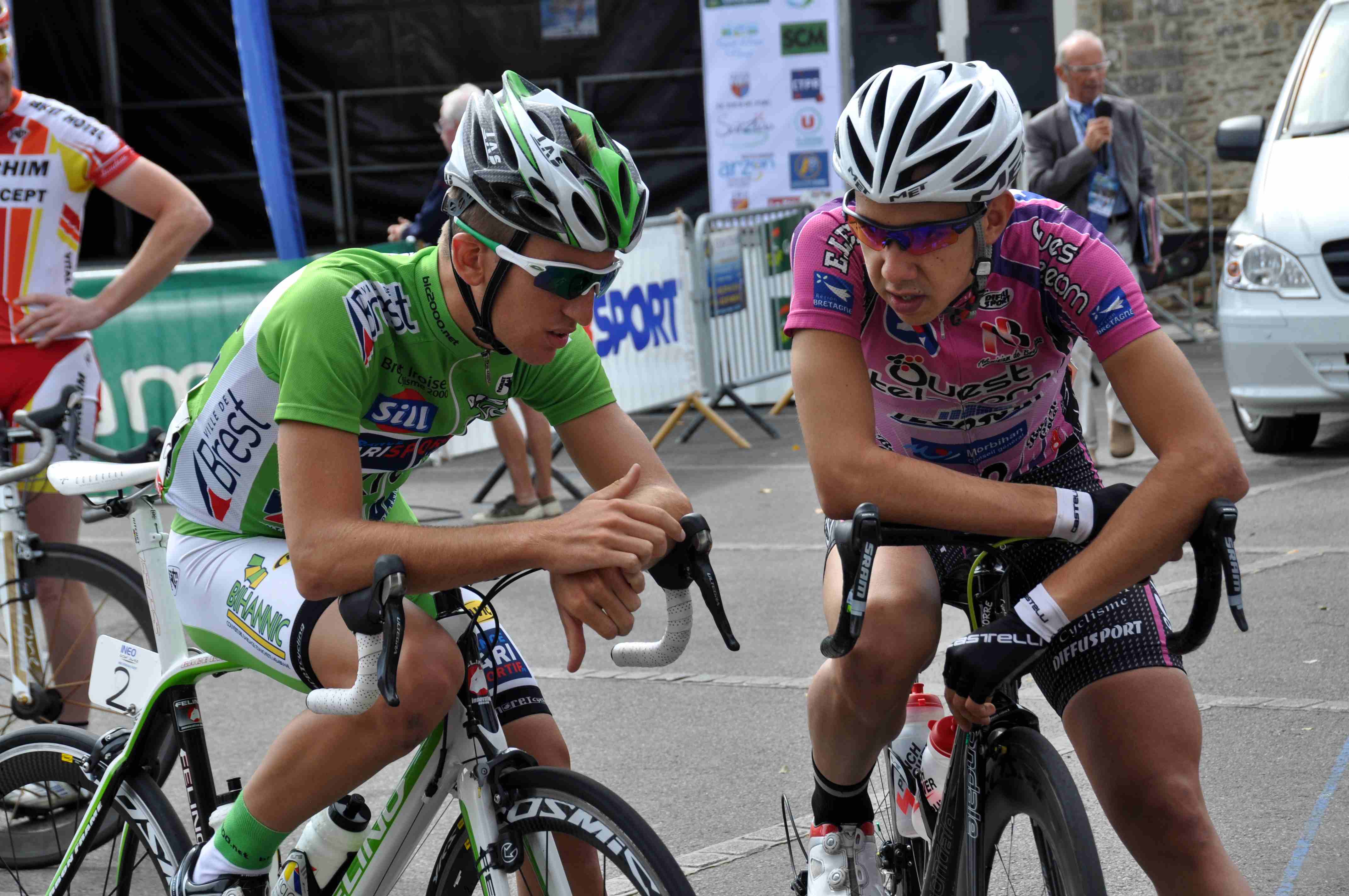 Vincent Guézennec (BIC 2000) et Kévin Sadoudi (Hennebont Cyclisme) attendent patiemment le départ.