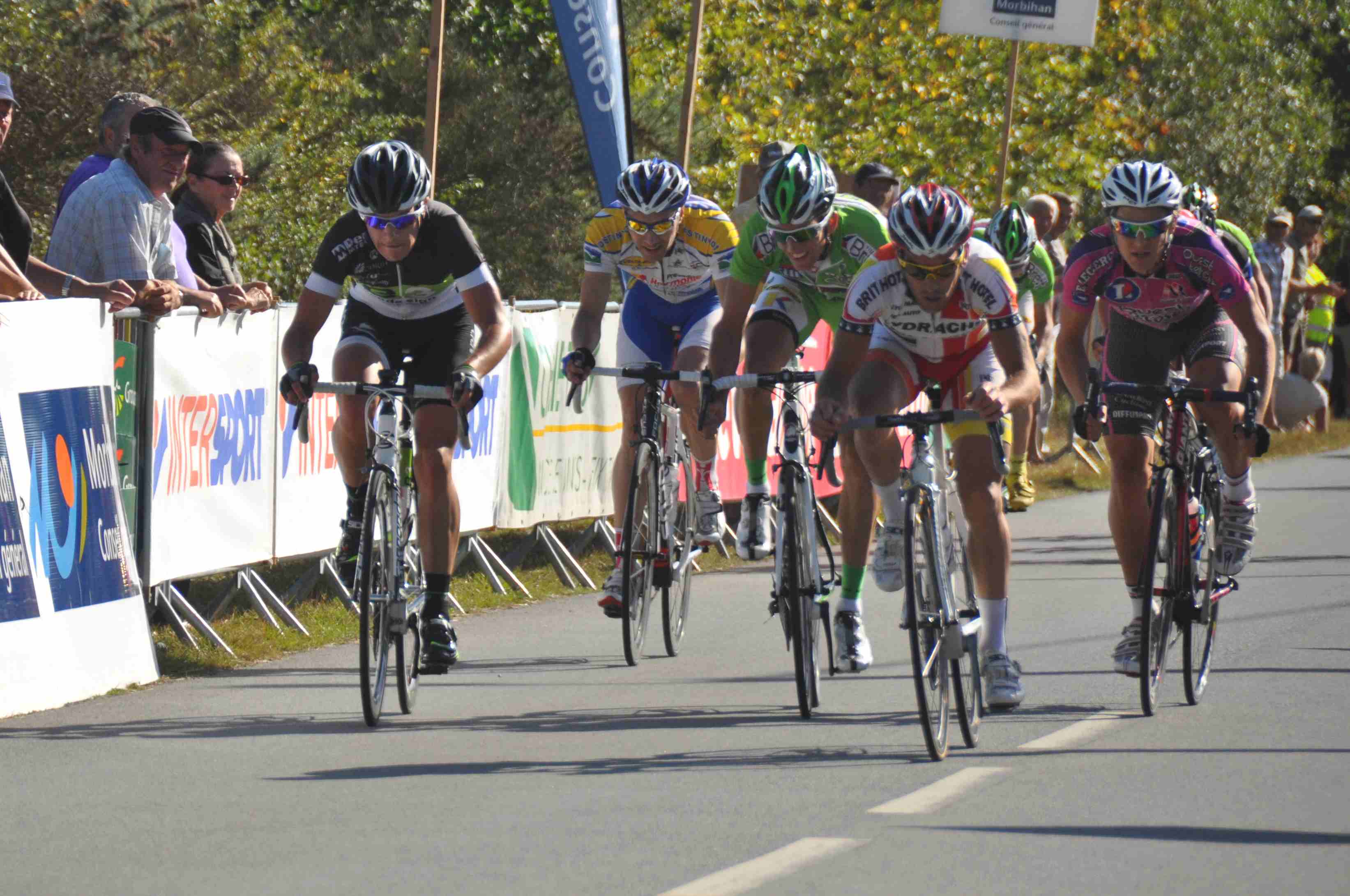 Malgré quelques attaques, il faudra attendre le km 60, à la sortie de la commune d’Arzon, pour voir un groupe de onze coureurs prendre la poudre d’escampette. Il y a là : Vincent Guézennec, Julien Jégou, Florent Mallégol, Geoffrey Millour (BIC 2000), Sam Allen (Hennebont Cyclisme), Jean-Marie Gouret (POC Côte de Lumière), Antoine Loreau (VC Pays de Lorient), Vincent Ragot (VC Pays de Loudéac), Fabrice Seigneur (ASPTT Rennes), Frédéric Le Marrec (UC Briochine) et Nicolas David (Vendée U). Leurs poursuivants ne les reverront pas jusqu’à l’arrivée.